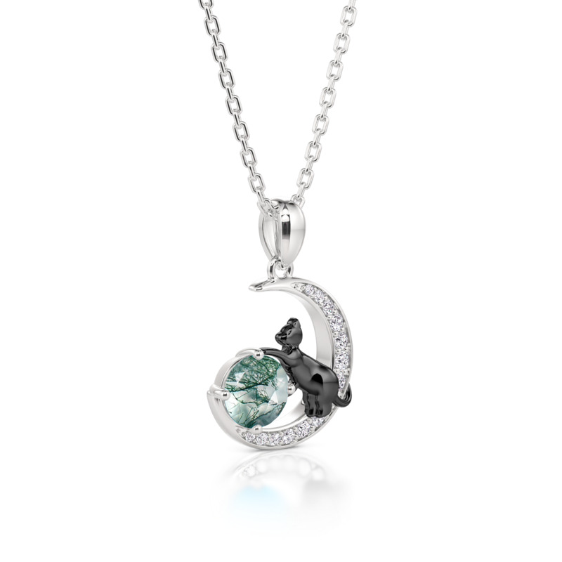 Jeulia Svart Katt på Månen Mossa Agat Halsband
