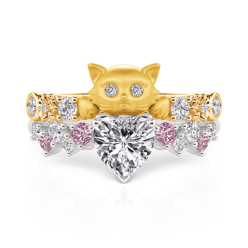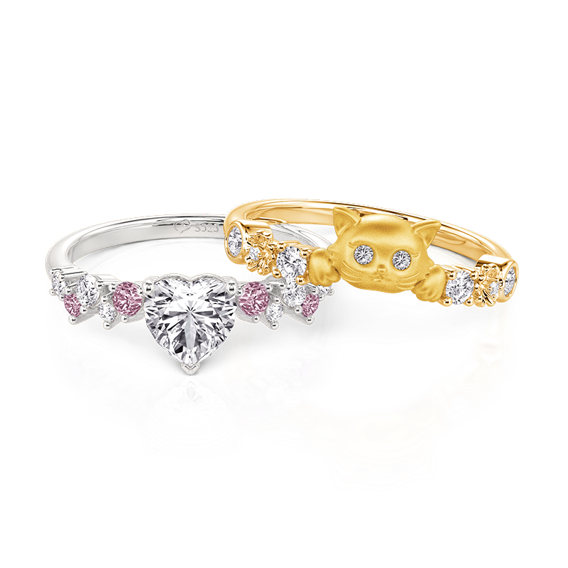 Jeulia Hug Me Sakura Katt Hjärta Ringset 2 Bit