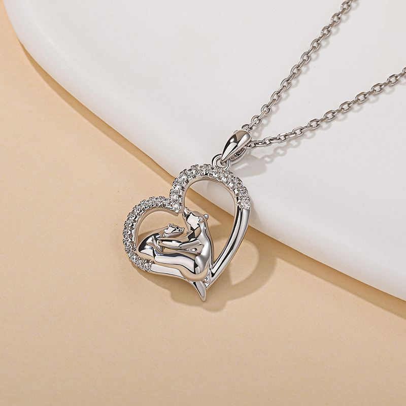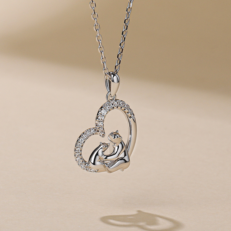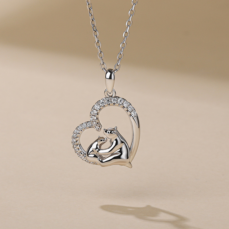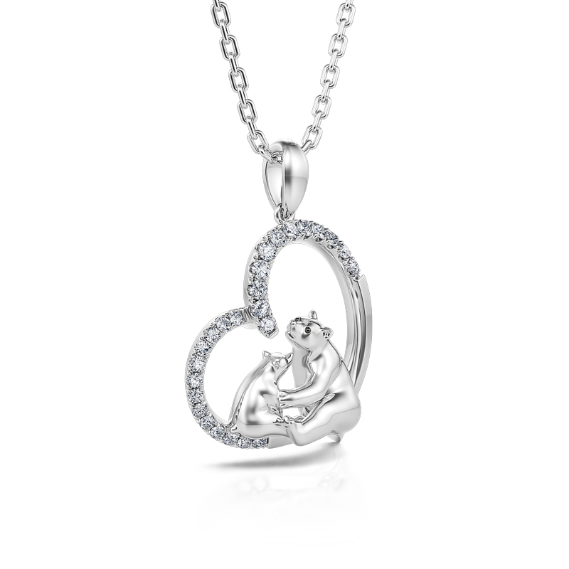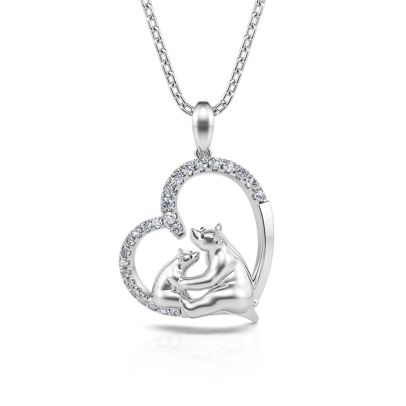 Jeulia "Moderskydd" Mamma Och Baby Isbjörn Sterling Silver Halsband