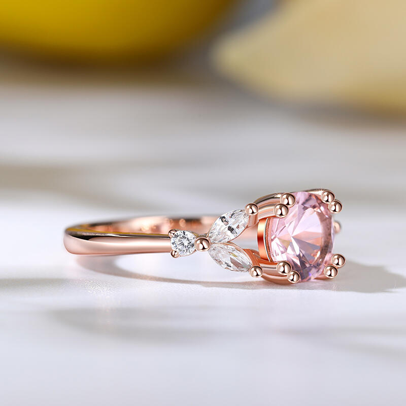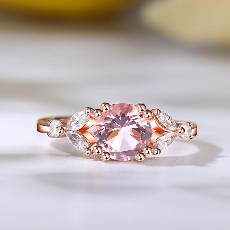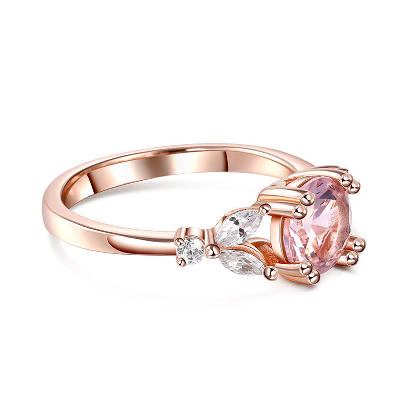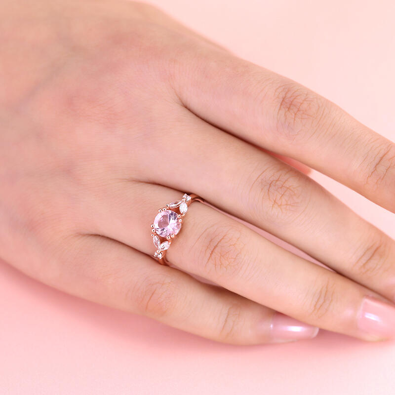 Jeulia Ring med syntetisk Morganit i sterlingsilver med rund slipning och naturinspiration