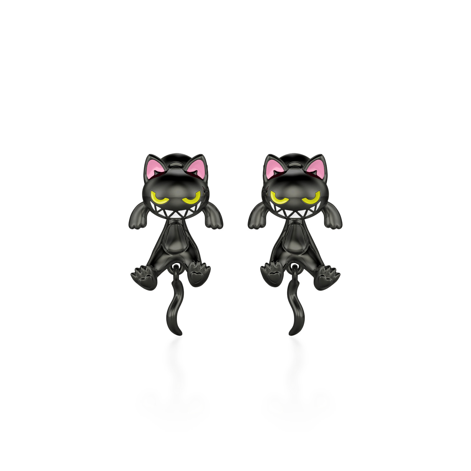 Jeulia Petland Dubbel Användning Emalj Svart Katt Örhängen