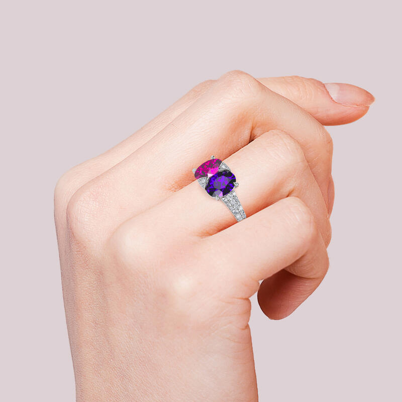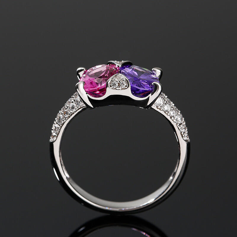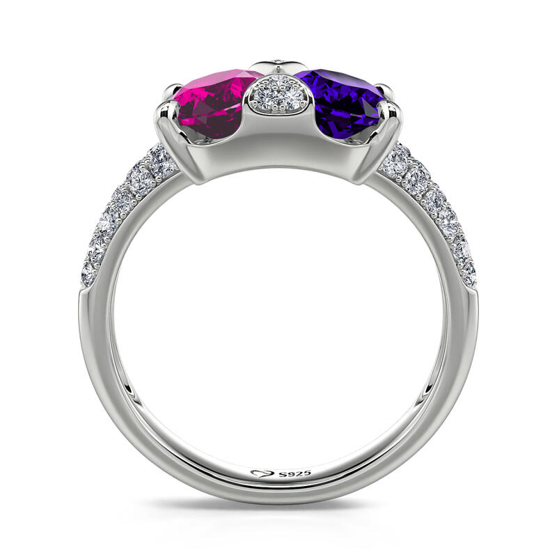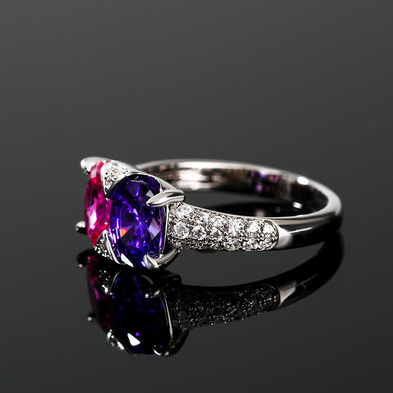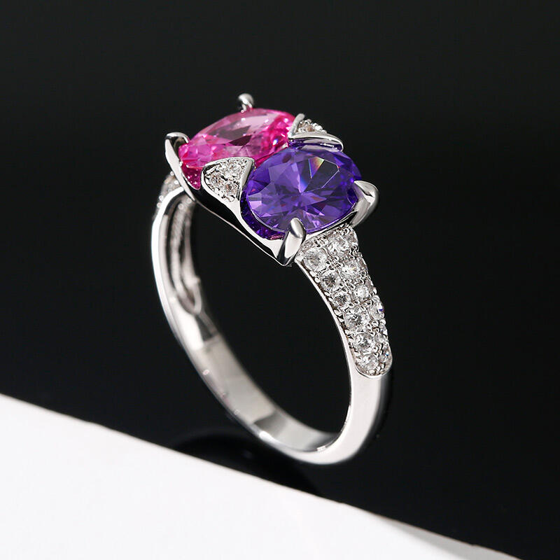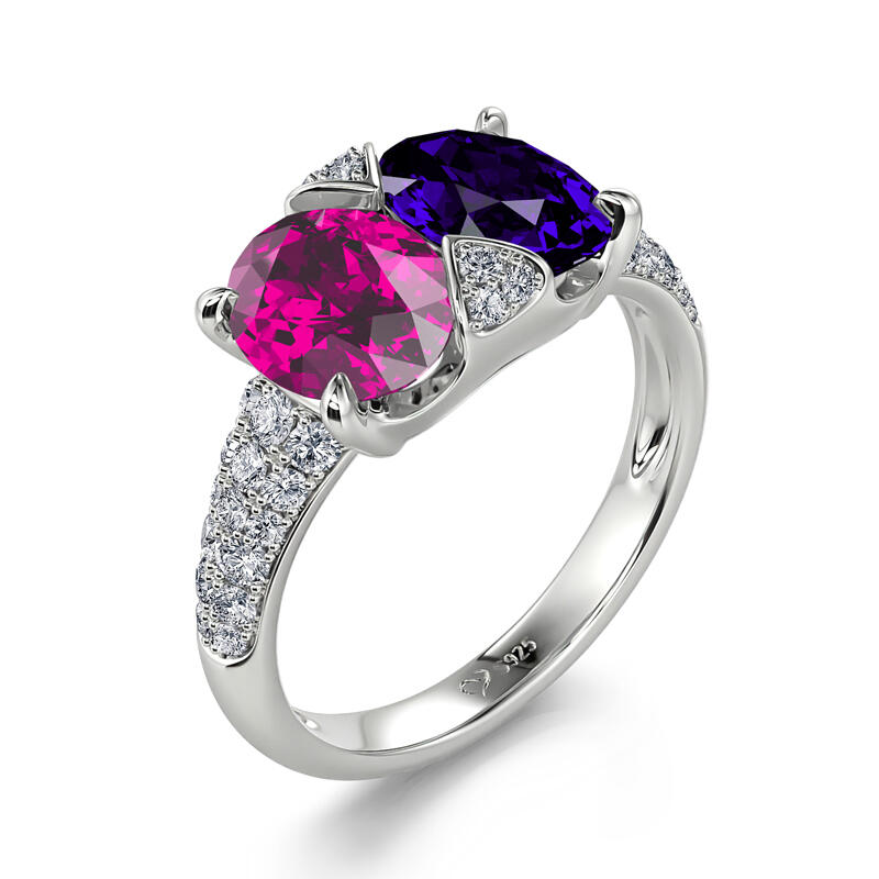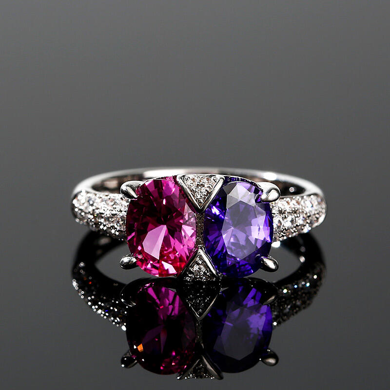 Ett fantastiskt tillskott till hennes smycken garderob, denna bländande ring är mer än hon kan föreställa sig. Utsökt och fantastisk, denna vackra design visar upp två färgglada ovala stenar på mitten och accentuerade med extra stenar. & nbsp; Polerad till en strålande glans, varje gång hon tittar på den här fina ringen kommer hennes tankar att vända sig till dig.